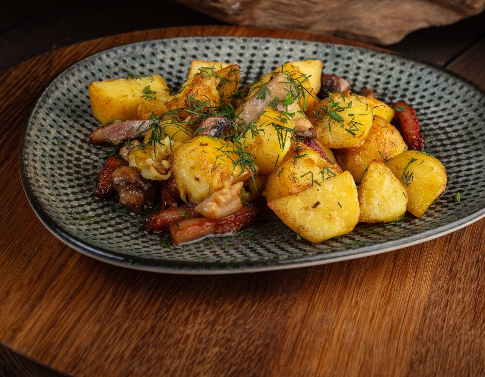 Жареная Картошечка с Белыми Грибами и Беконом
